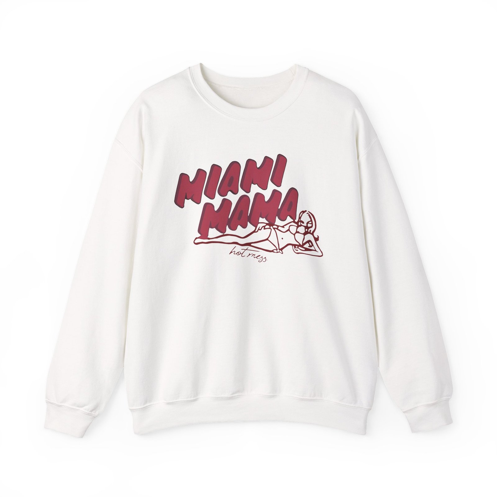 Ideal for any situation, a Alix Earle Miami Mama unisex heavy blend crewneck sweatshirt is pure comfort. These garments are made from polyester and cotton. This combination helps designs come out looking fresh and beautiful. The collar is ribbed knit, so it retains its shape even after washing. There are no itchy side seams on these sweaters.