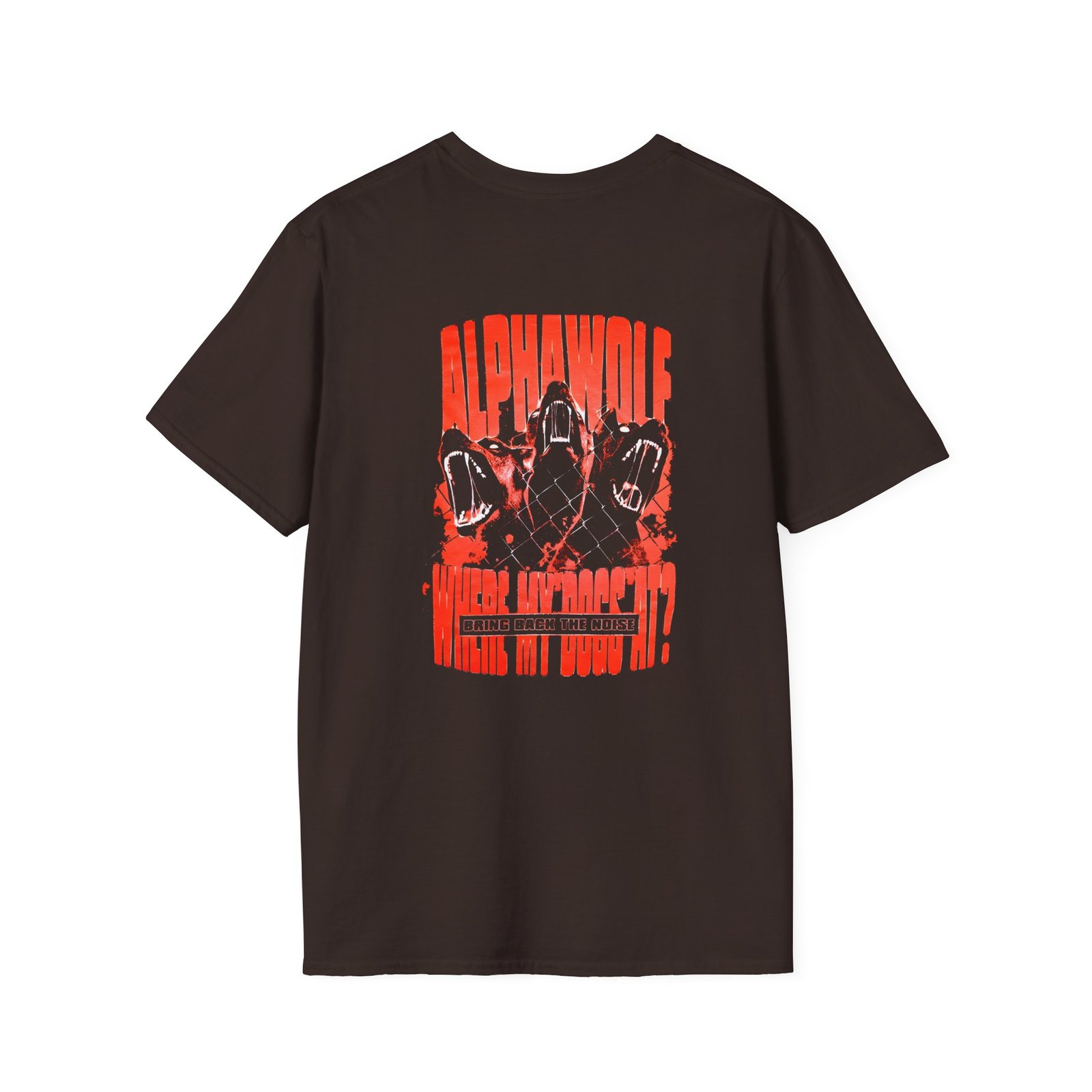 The Alpha Wolf Where My Dogs at unisex soft-style t-shirt puts a new spin on casual comfort. Made from very soft materials, this tee is 100% cotton for solid colors. Heather colors and sports grey include polyester. The shoulders have twill tape for improved durability. There are no side seams. The collar is made with ribbed knitting to prevent curling damage.