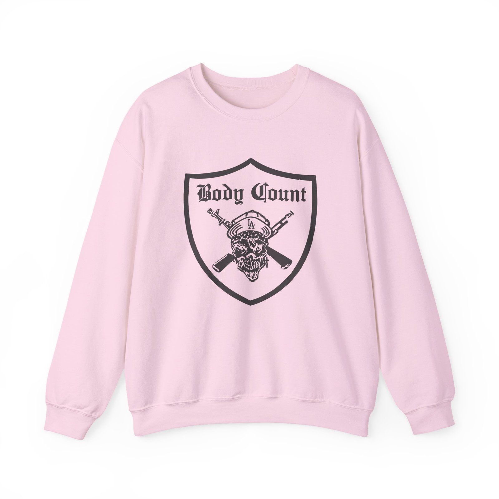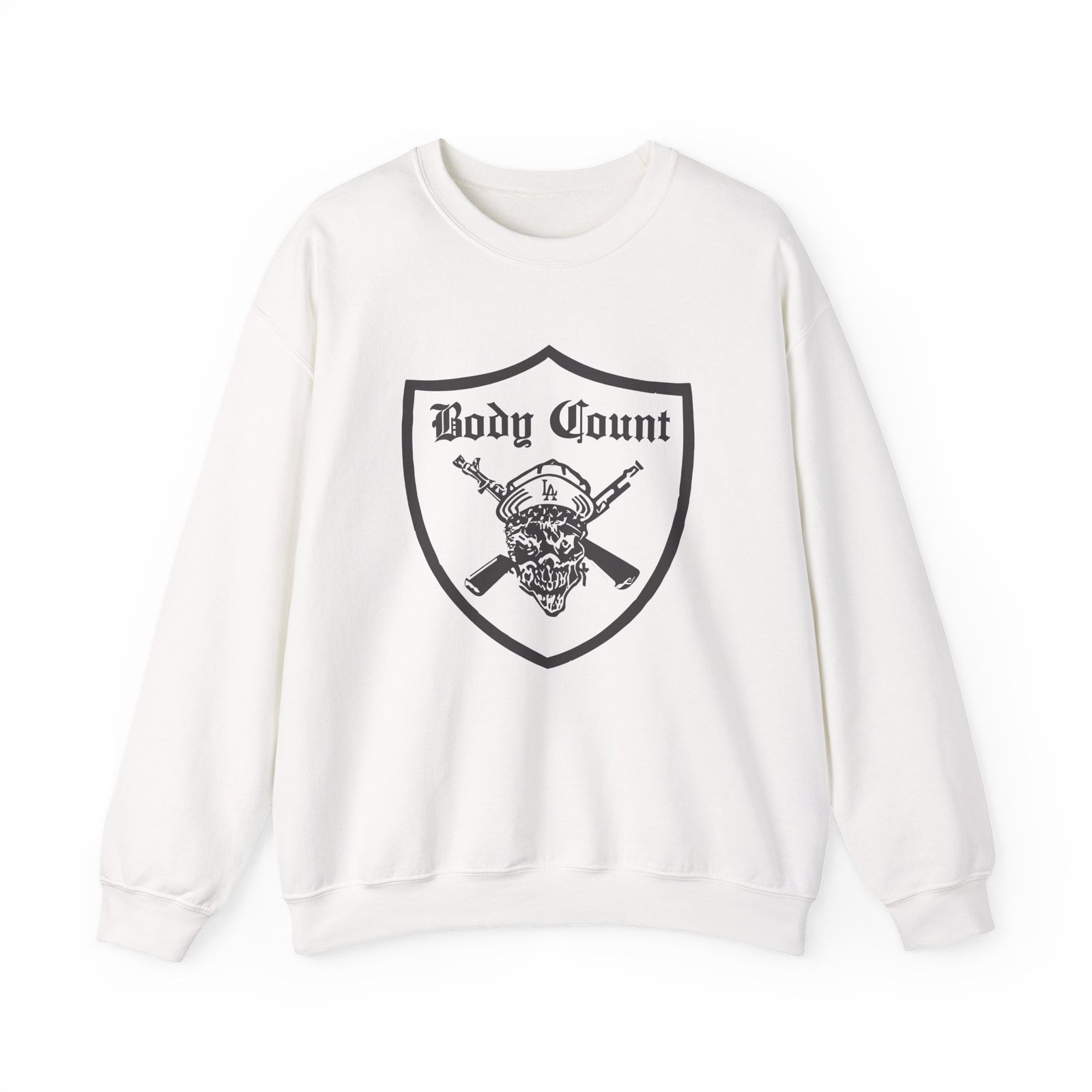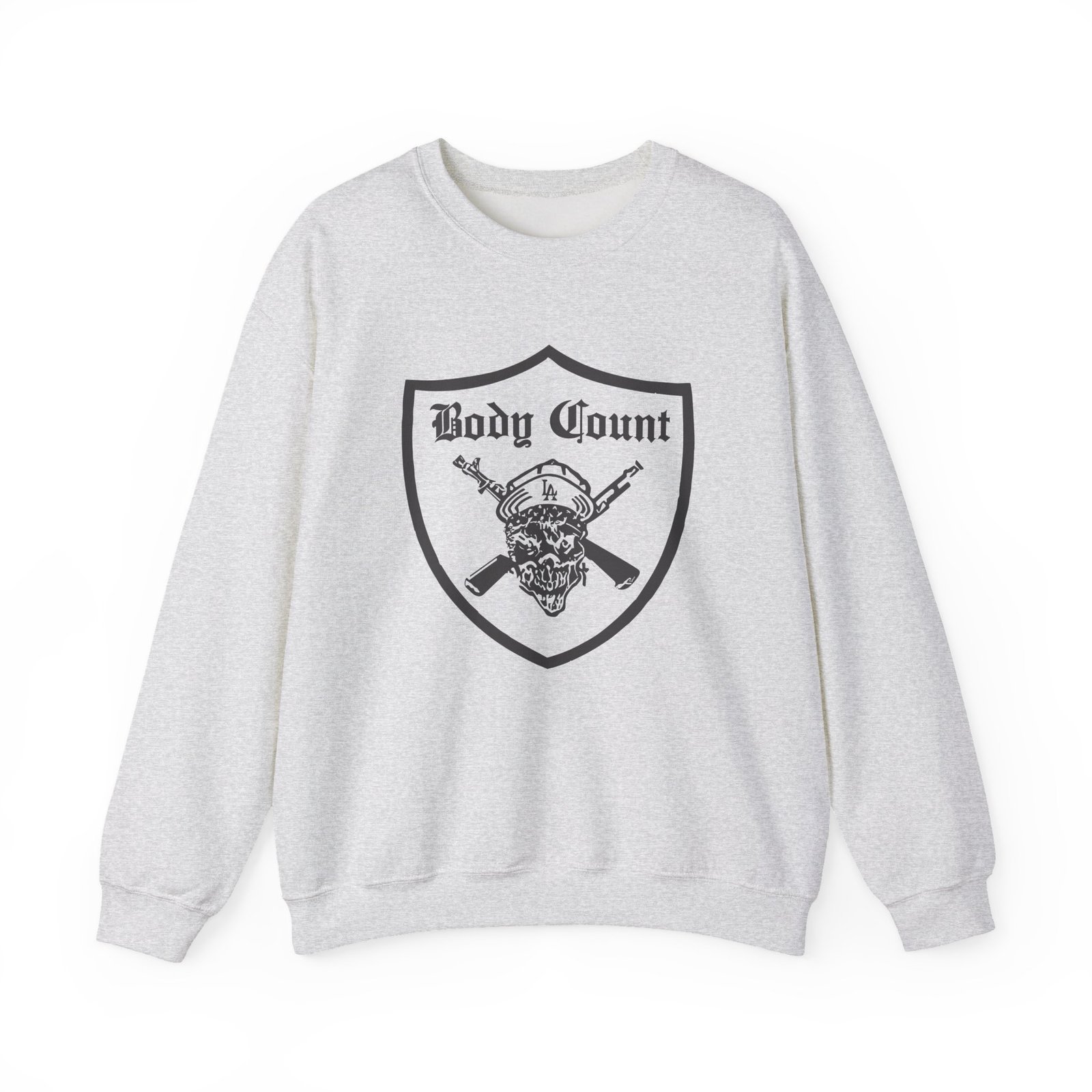 Ideal for any situation, a Body Count Pirate Logo unisex heavy blend crewneck sweatshirt is pure comfort. These garments are made from polyester and cotton. This combination helps designs come out looking fresh and beautiful. The collar is ribbed knit, so it retains its shape even after washing. There are no itchy side seams on these sweaters.