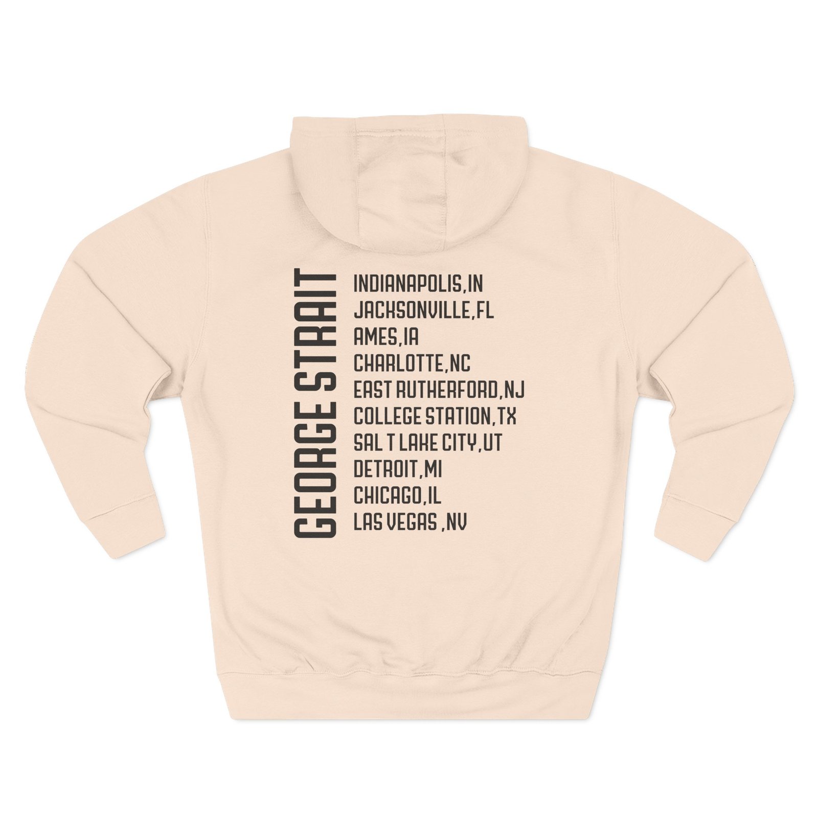 Beat the cold with this George Strait Heather Denim Silhouette premium pullover hoodie that’s just the right layer of warm and cozy. Made with three-panel fleece lining, this pullover is double stitched for durability and roomy. Pick one in your favorite color to match your style.
