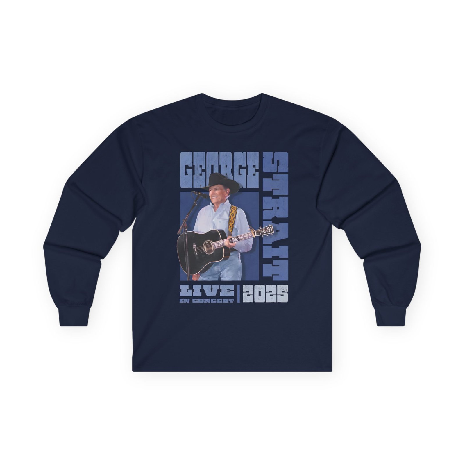 A bit more formal than a standard-issue t-shirt, the George Strait Tour ultra cotton long sleeve tee is a clear comfort winner. The sleeves also act as a nice frame. There are no side seams. The shoulders are taped for improved durability. This makes for a good fitting around the shoulders and neck. The cotton used for these shirts is environmentally friendly.