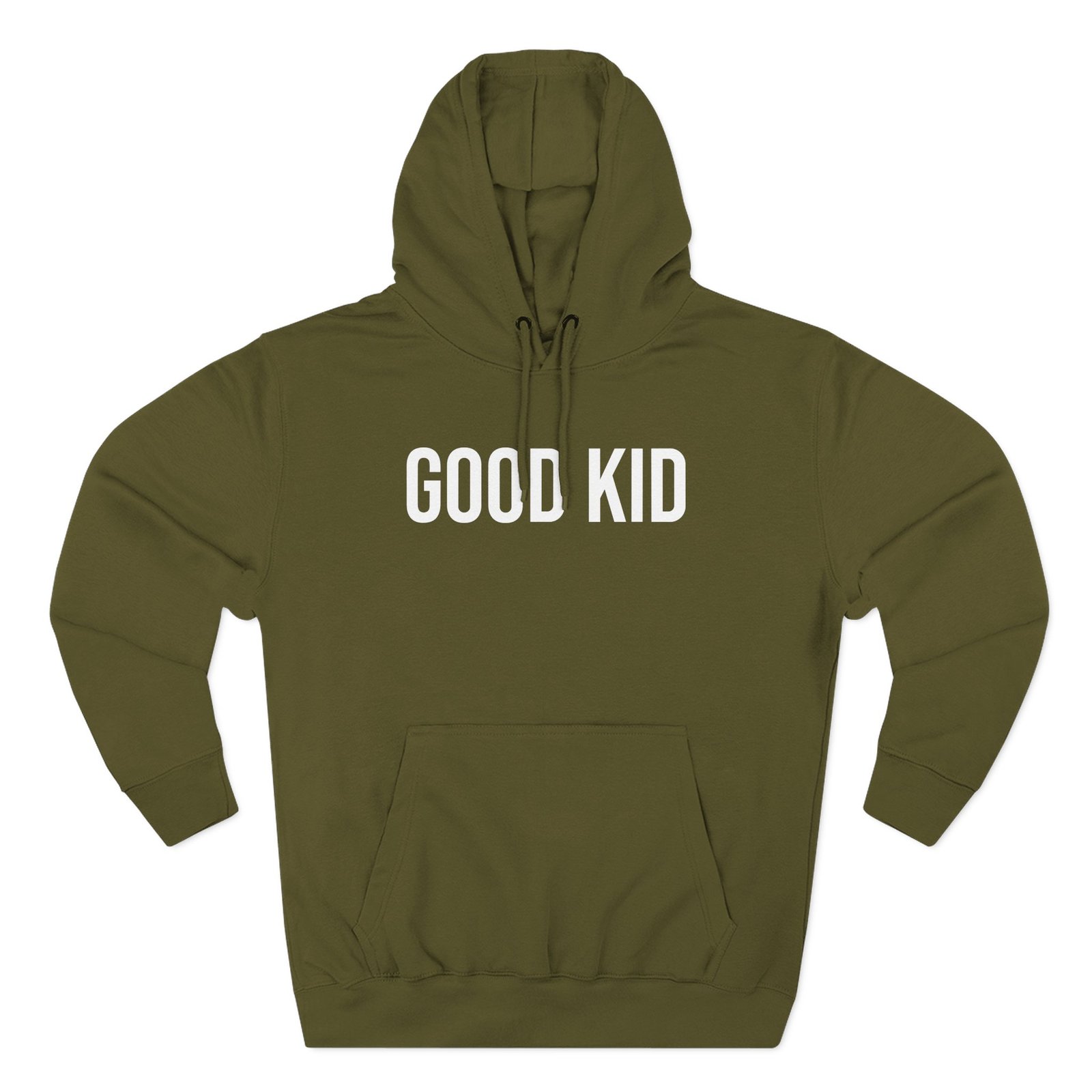 Beat the cold with this Good Kid premium pullover hoodie that’s just the right layer of warm and cozy. Made with three-panel fleece lining, this pullover is double stitched for durability and roomy. Pick one in your favorite color to match your style.