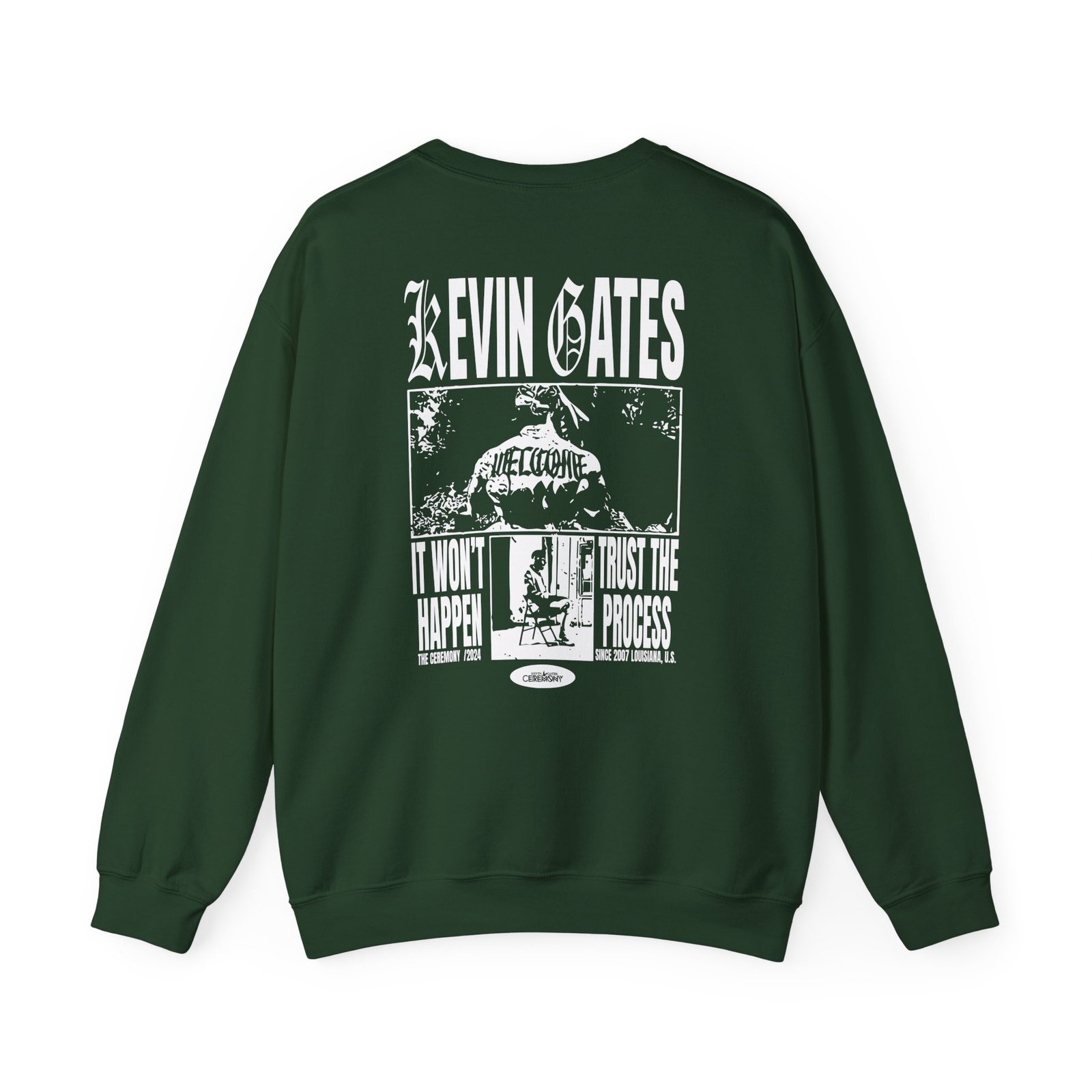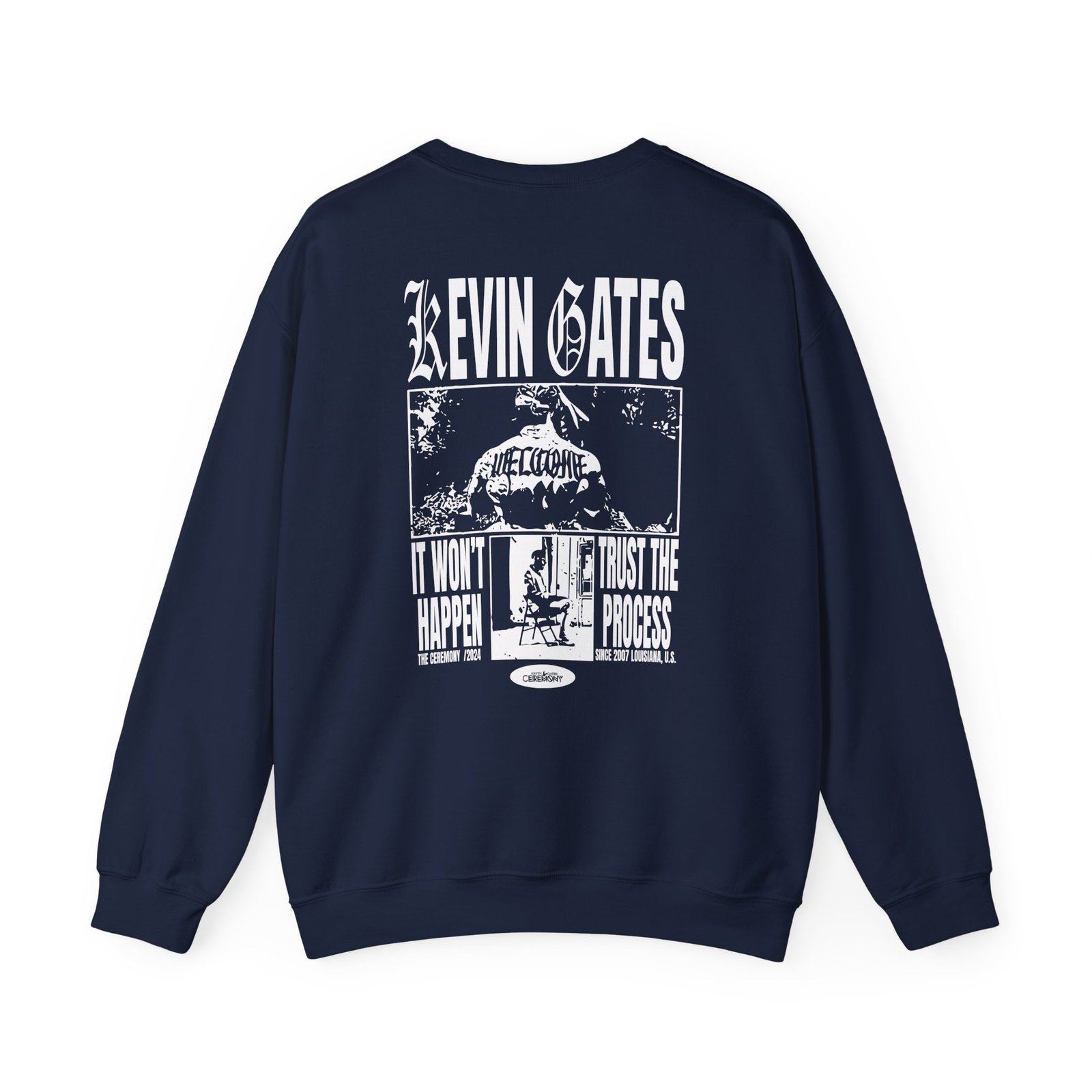 Ideal for any situation, a kevin gates The Ceremony unisex heavy blend crewneck sweatshirt is pure comfort. These garments are made from polyester and cotton. This combination helps designs come out looking fresh and beautiful. The collar is ribbed knit, so it retains its shape even after washing. There are no itchy side seams on these sweaters.