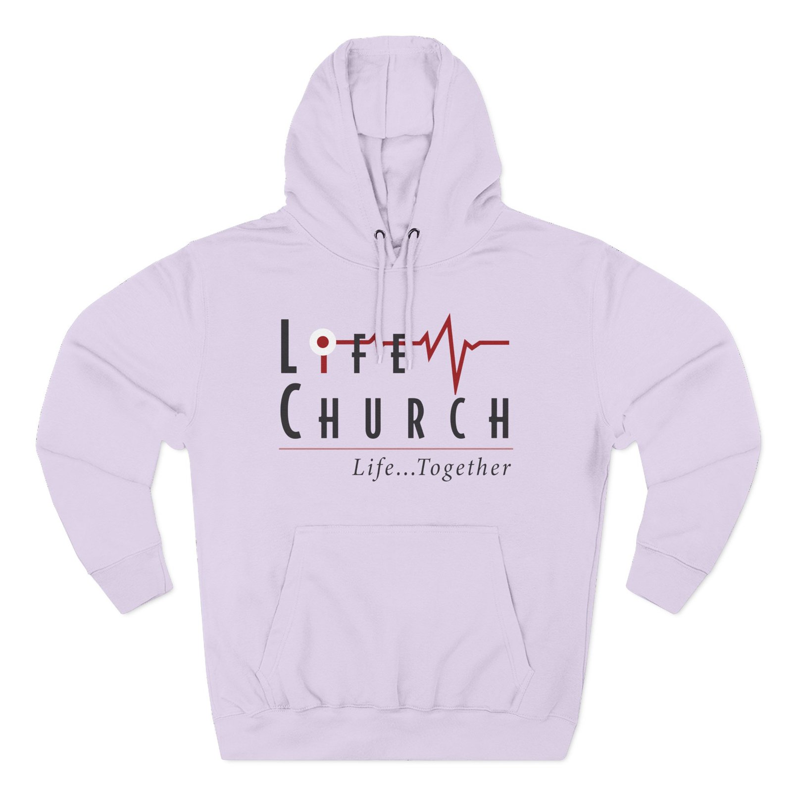Beat the cold with this Life Church premium pullover hoodie that’s just the right layer of warm and cozy. Made with three-panel fleece lining, this pullover is double stitched for durability and roomy. Pick one in your favorite color to match your style.