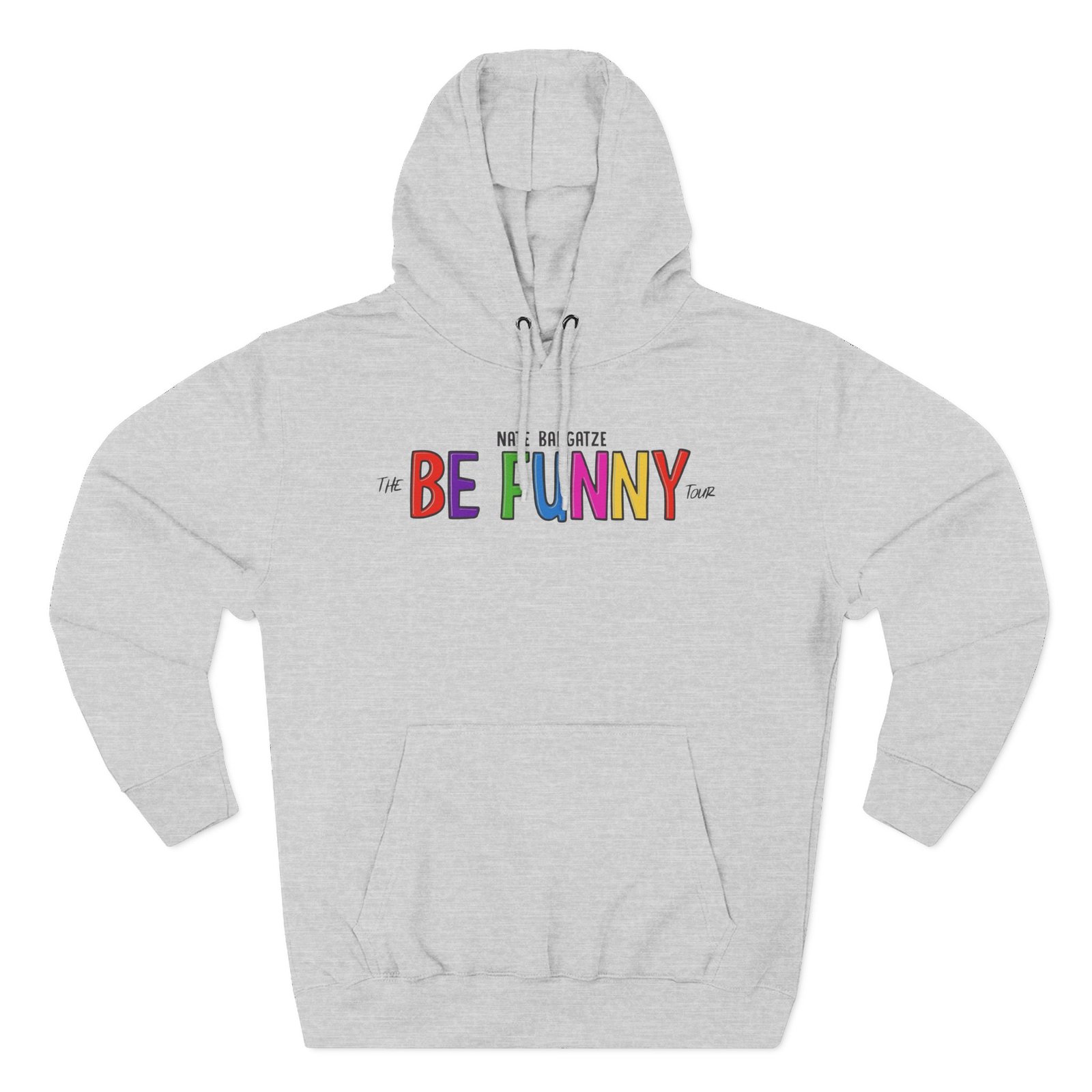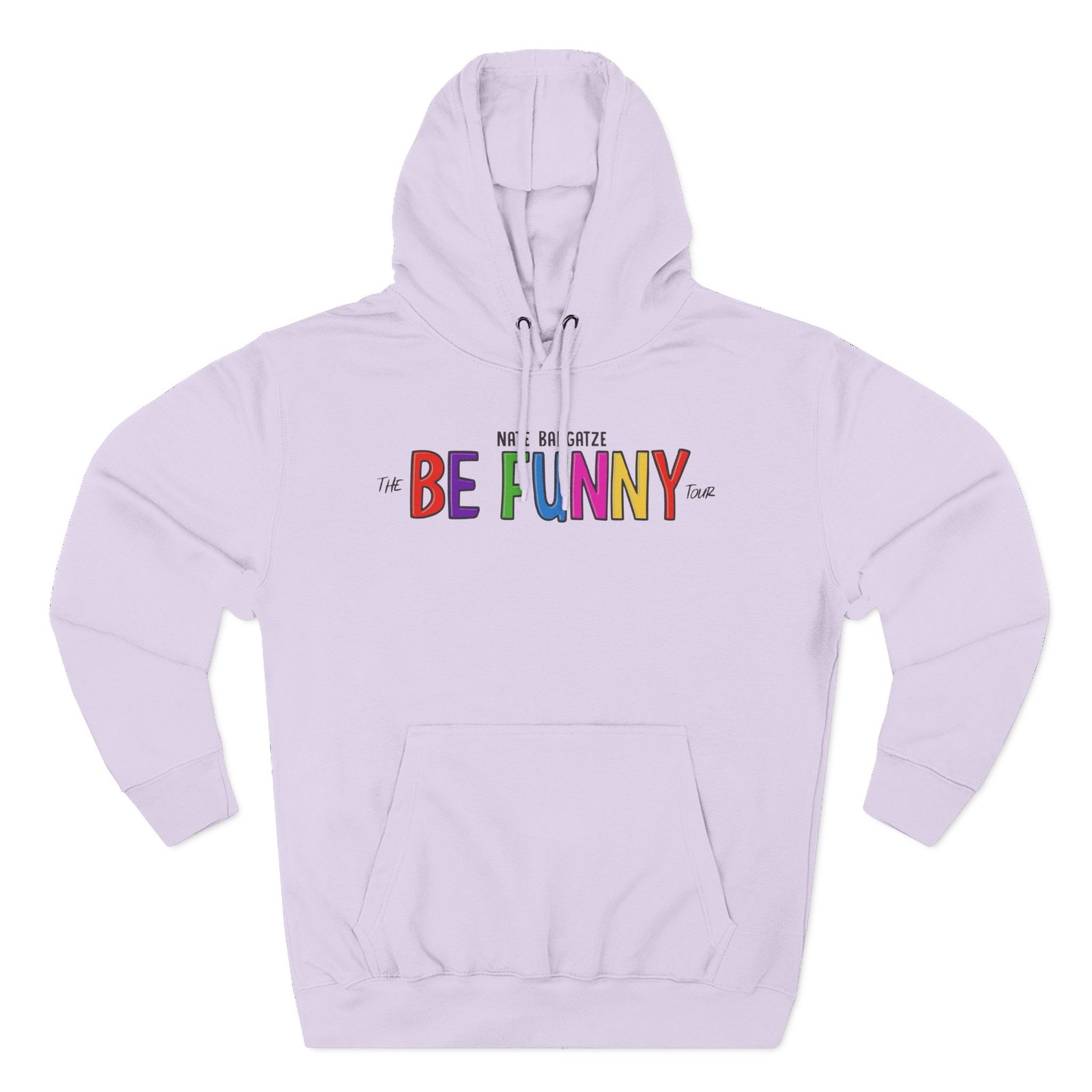 Beat the cold with this Nate Bargatze the Be Funny Tour premium pullover hoodie that’s just the right layer of warm and cozy. Made with three-panel fleece lining, this pullover is double stitched for durability and roomy. Pick one in your favorite color to match your style.