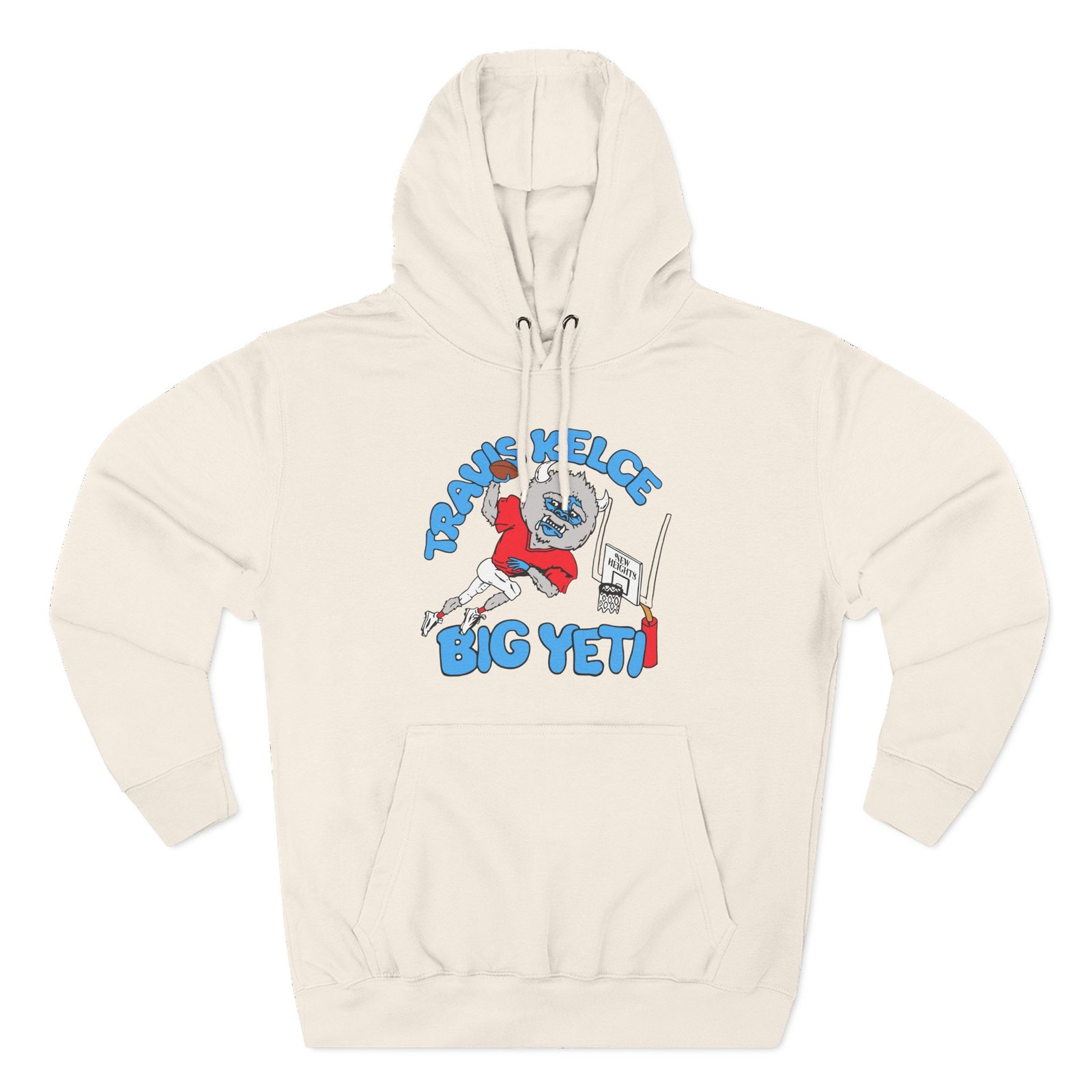 Beat the cold with this New Heights Travis Kelce Big Yeti premium pullover hoodie that’s just the right layer of warm and cozy. Made with three-panel fleece lining, this pullover is double stitched for durability and roomy. Pick one in your favorite color to match your style.