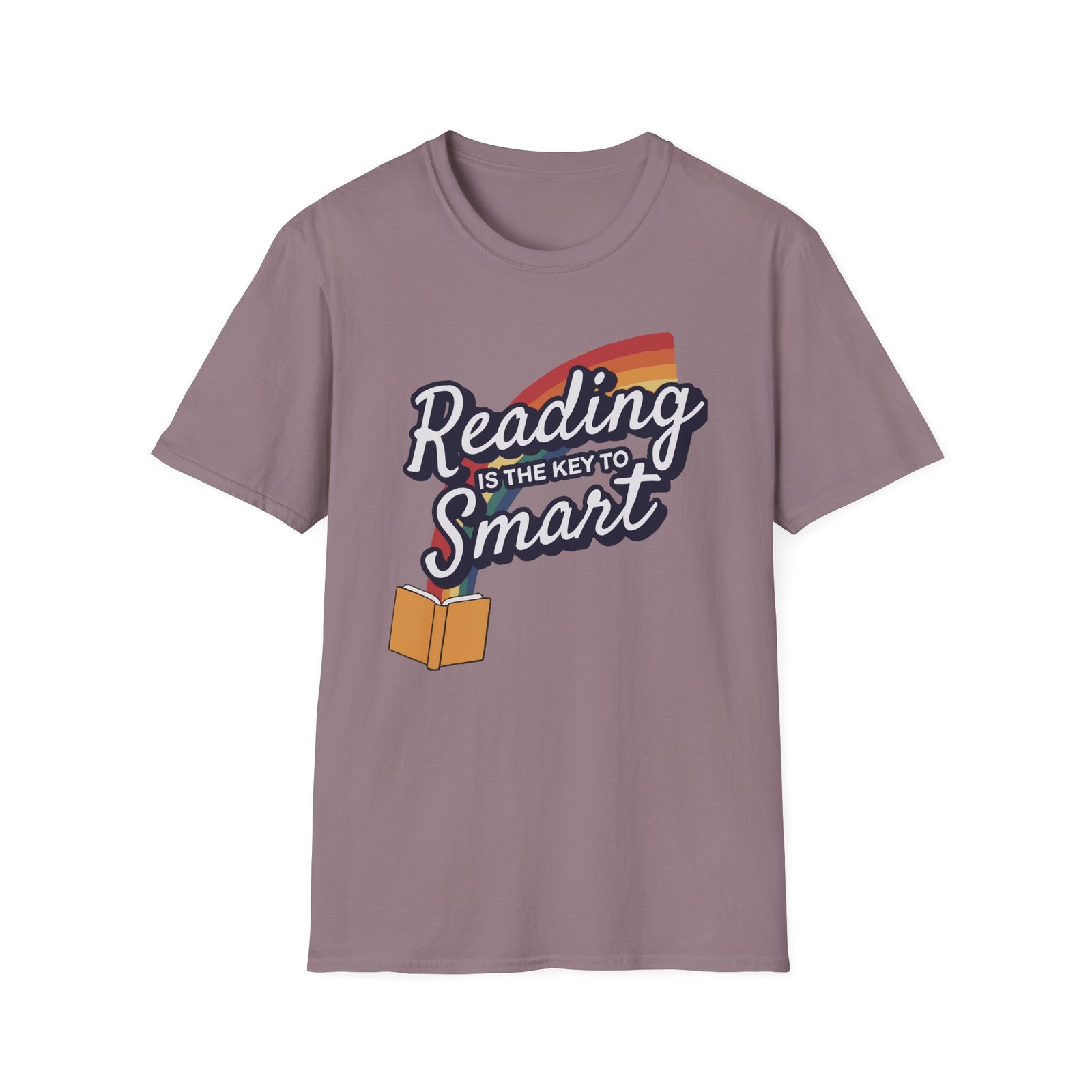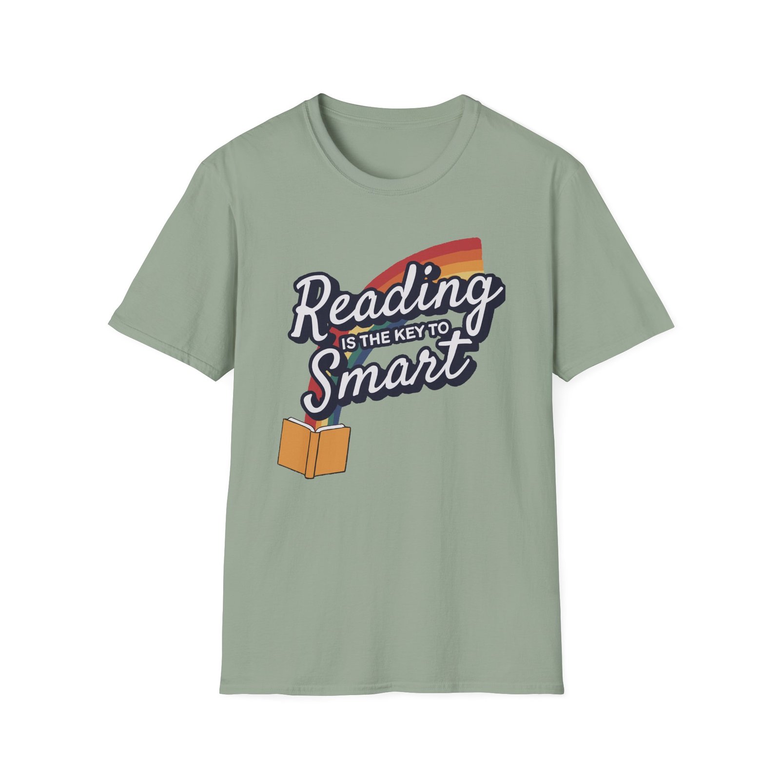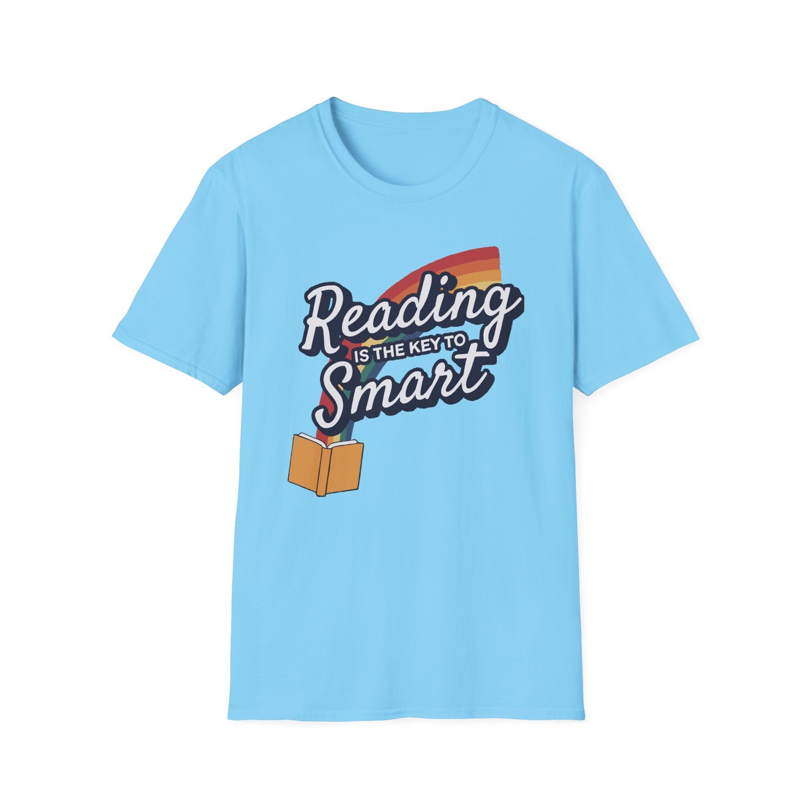 The Reading is the Key to Smart unisex soft-style t-shirt puts a new spin on casual comfort. Made from very soft materials, this tee is 100% cotton for solid colors. Heather colors and sports grey include polyester. The shoulders have twill tape for improved durability. There are no side seams. The collar is made with ribbed knitting to prevent curling damage.