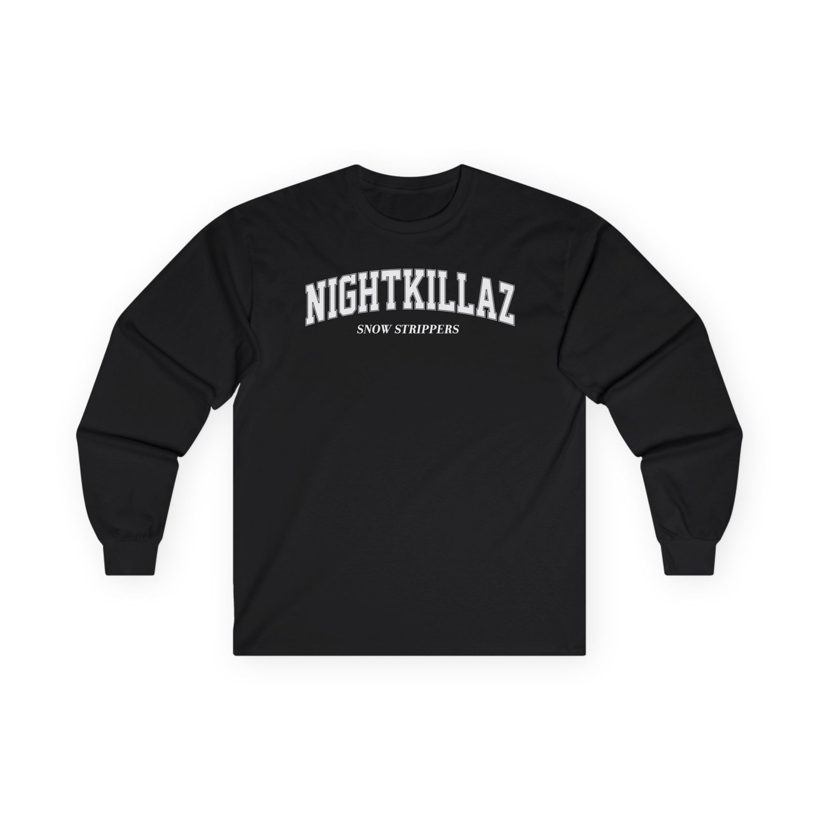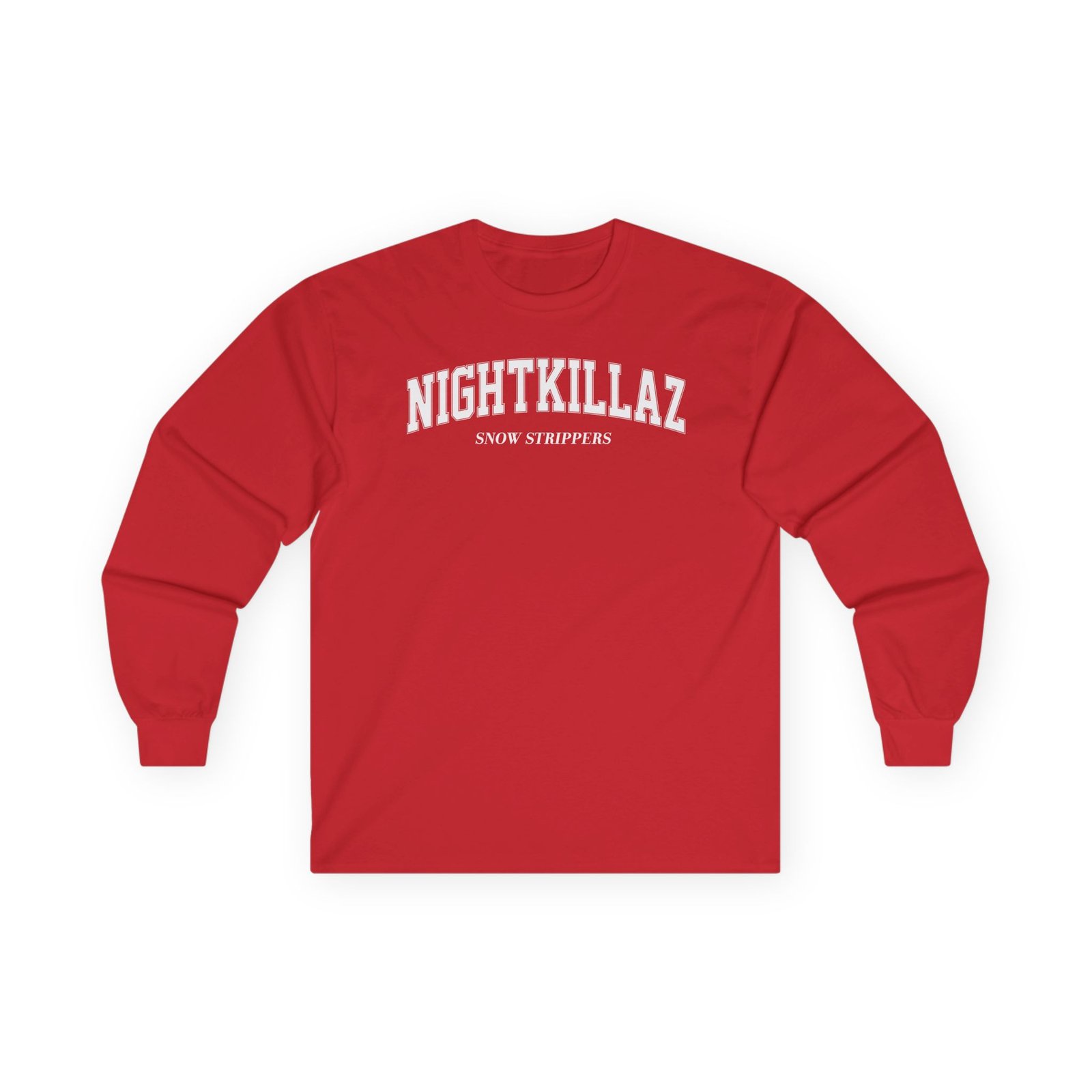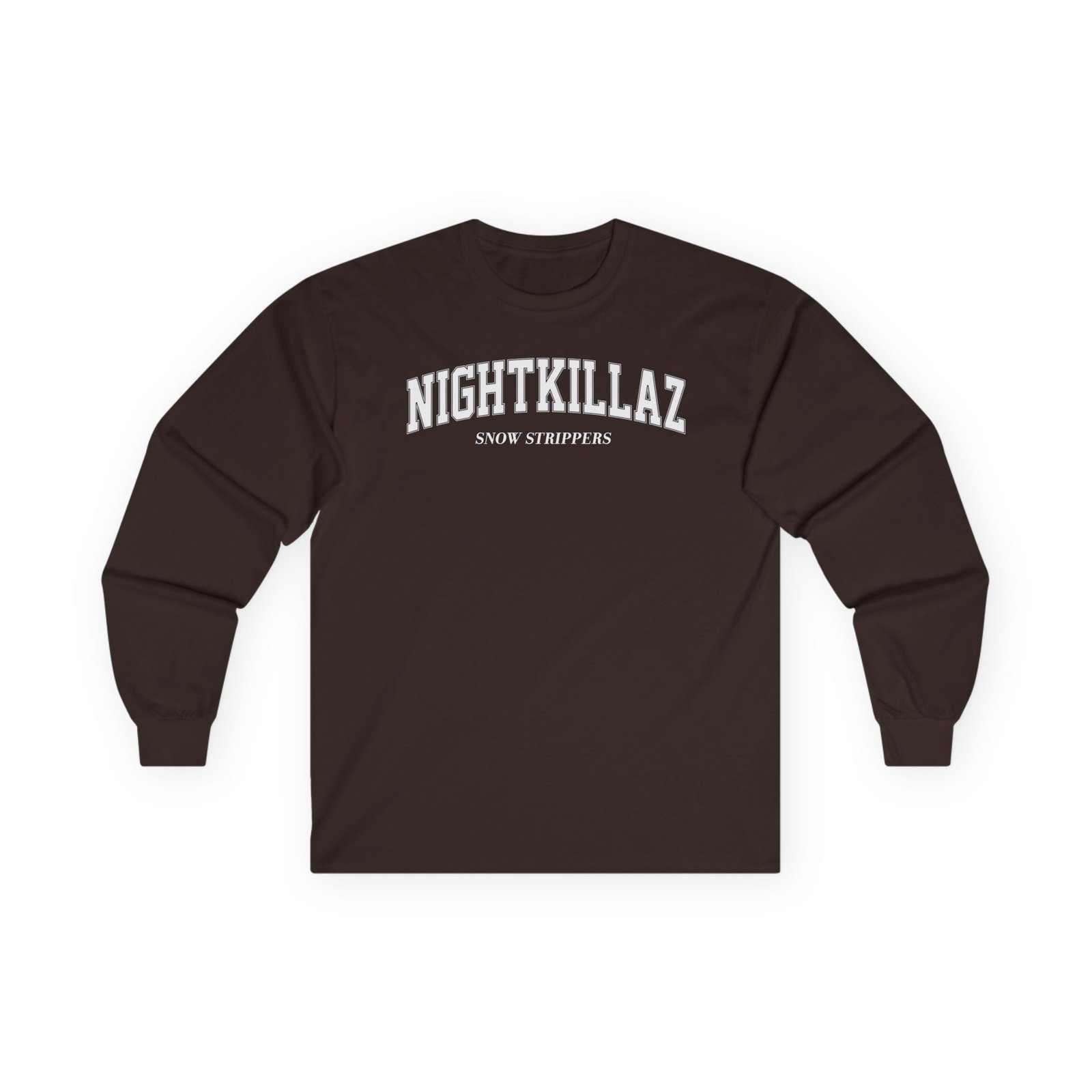 A bit more formal than a standard-issue t-shirt, the Snow Strippers Nightkillaz ultra cotton long sleeve tee is a clear comfort winner. The sleeves also act as a nice frame. There are no side seams. The shoulders are taped for improved durability. This makes for a good fitting around the shoulders and neck. The cotton used for these shirts is environmentally friendly.