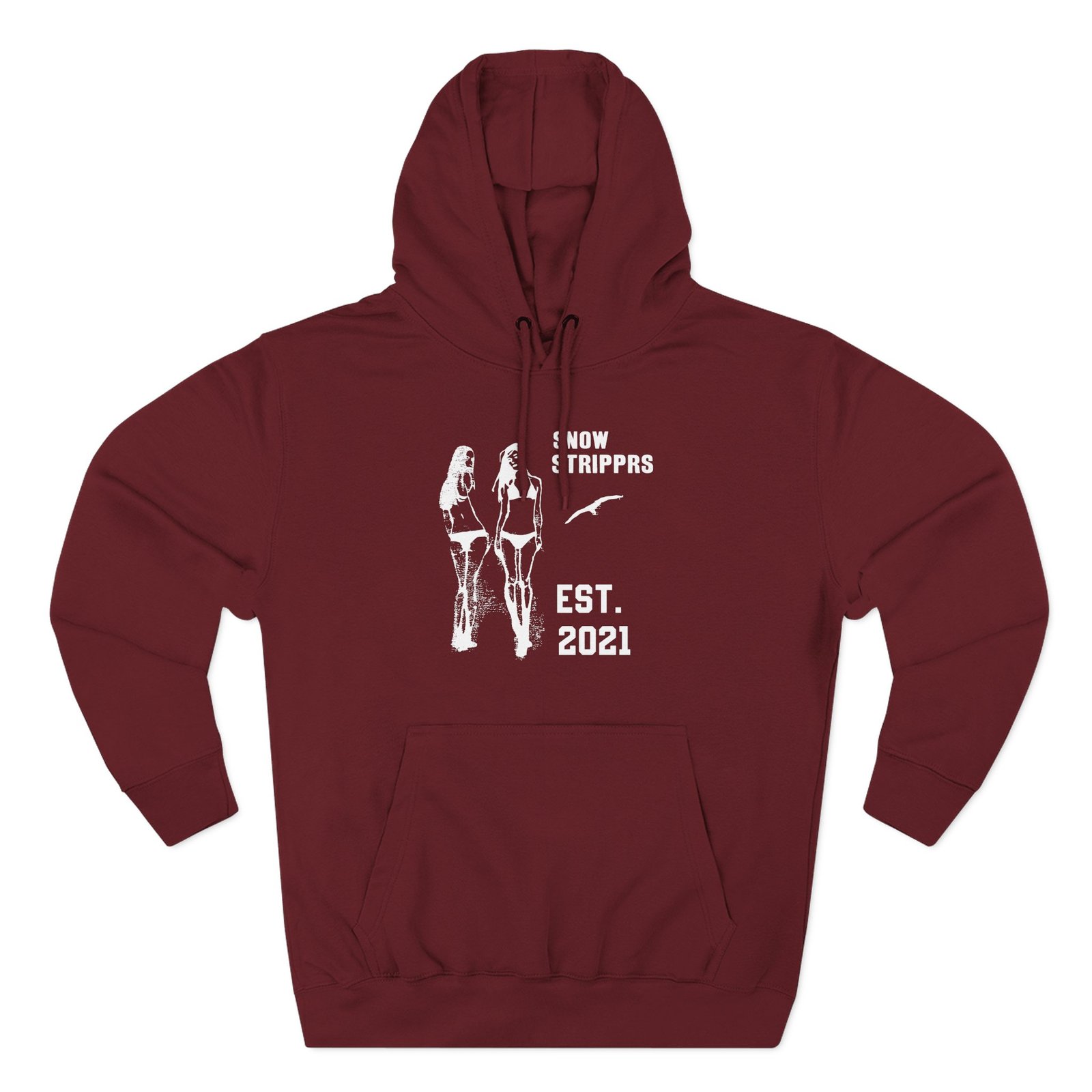 Beat the cold with this Snow Strippers premium pullover hoodie that’s just the right layer of warm and cozy. Made with three-panel fleece lining, this pullover is double stitched for durability and roomy. Pick one in your favorite color to match your style.