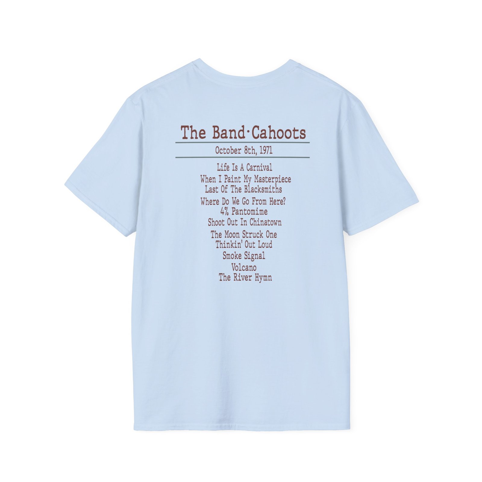 The Band Cahoots 50th Anniversary unisex soft-style t-shirt puts a new spin on casual comfort. Made from very soft materials, this tee is 100% cotton for solid colors. Heather colors and sports grey include polyester. The shoulders have twill tape for improved durability. There are no side seams. The collar is made with ribbed knitting to prevent curling damage.
