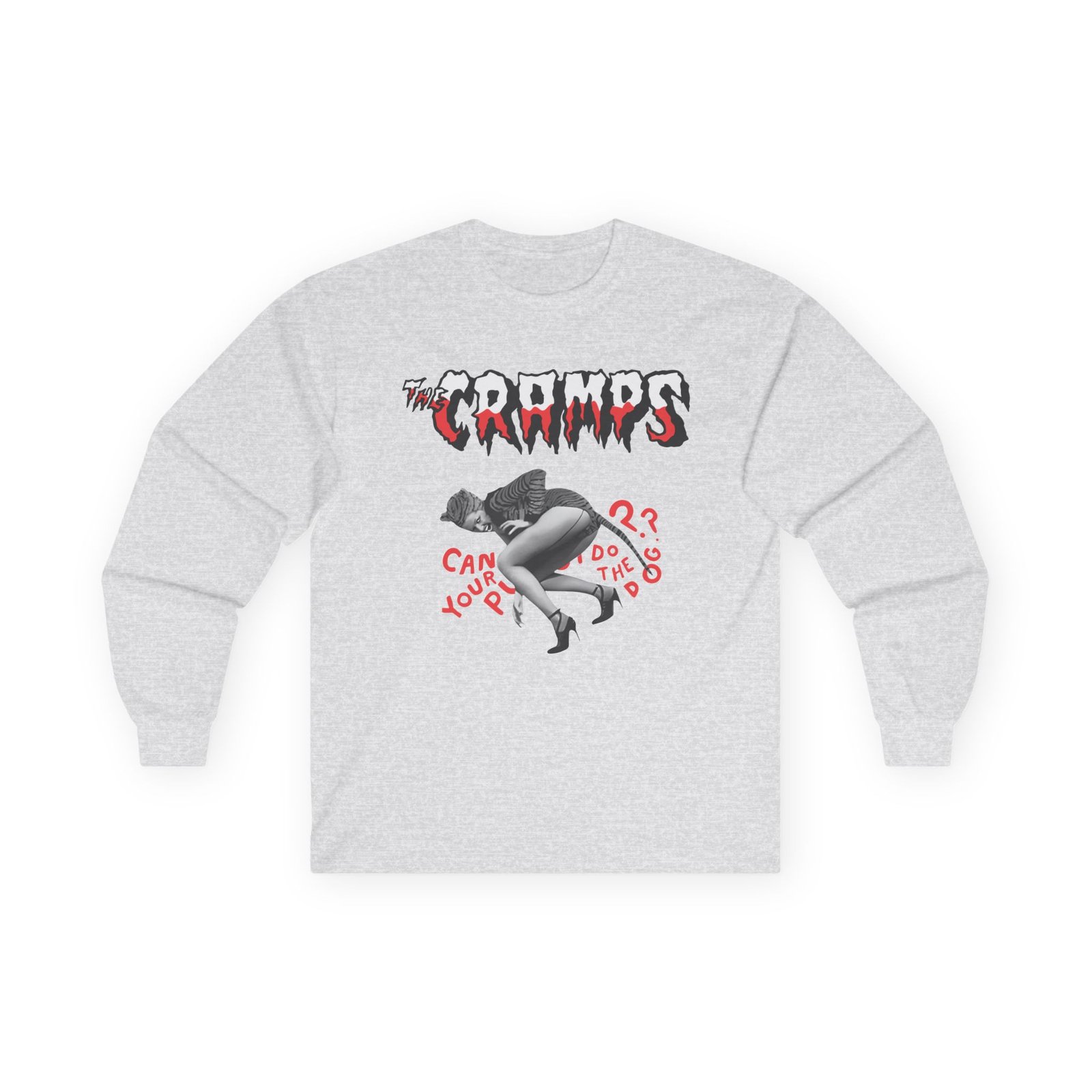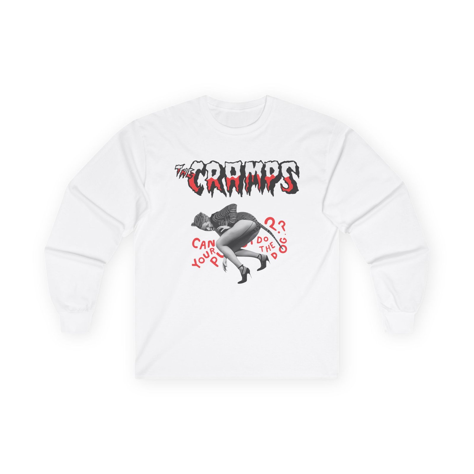 A bit more formal than a standard-issue t-shirt, the The Cramps Do the Dog ultra cotton long sleeve tee is a clear comfort winner. The sleeves also act as a nice frame. There are no side seams. The shoulders are taped for improved durability. This makes for a good fitting around the shoulders and neck. The cotton used for these shirts is environmentally friendly.