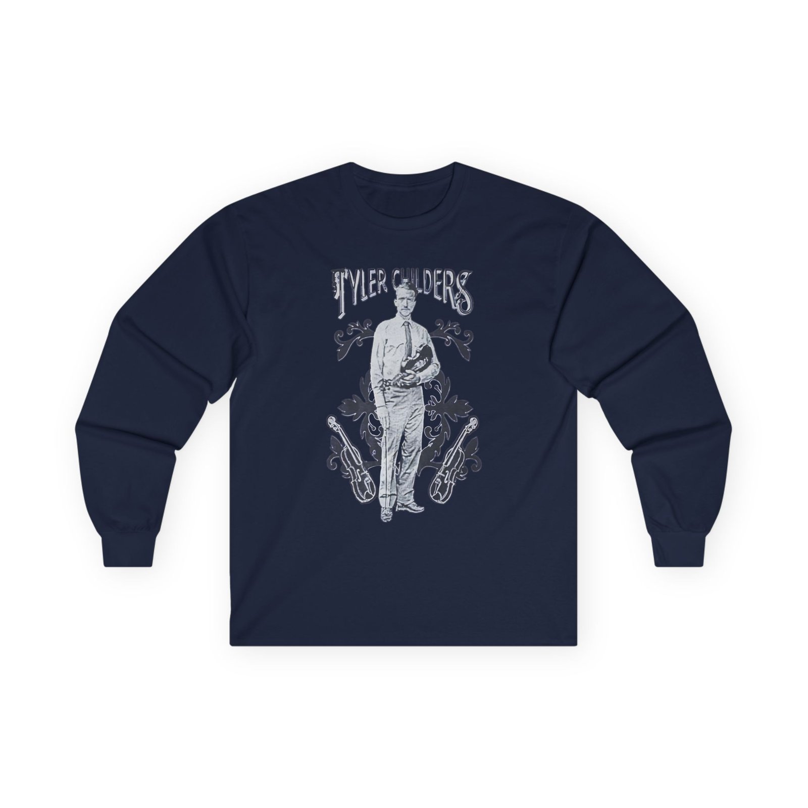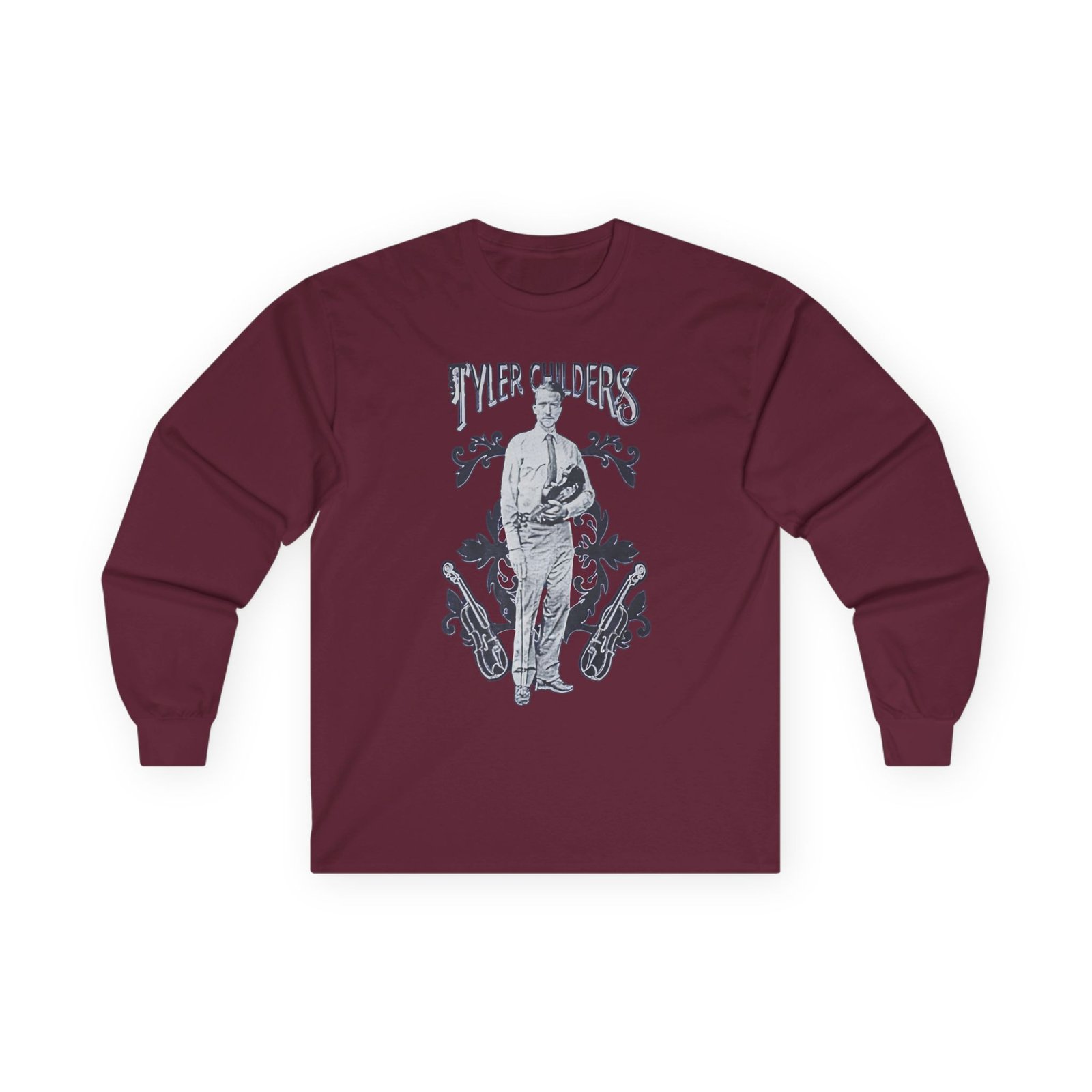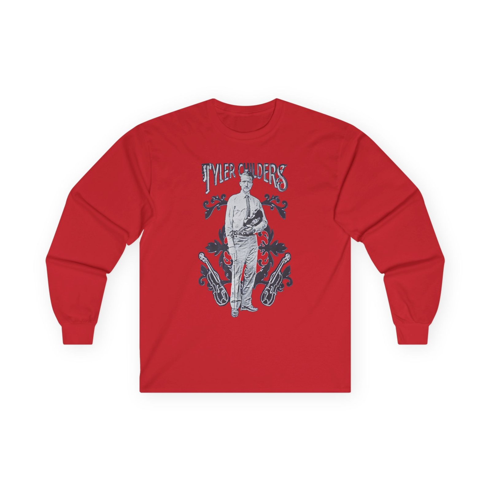 A bit more formal than a standard-issue t-shirt, the Tyler Childers Long Violent History ultra cotton long sleeve tee is a clear comfort winner. The sleeves also act as a nice frame. There are no side seams. The shoulders are taped for improved durability. This makes for a good fitting around the shoulders and neck. The cotton used for these shirts is environmentally friendly.